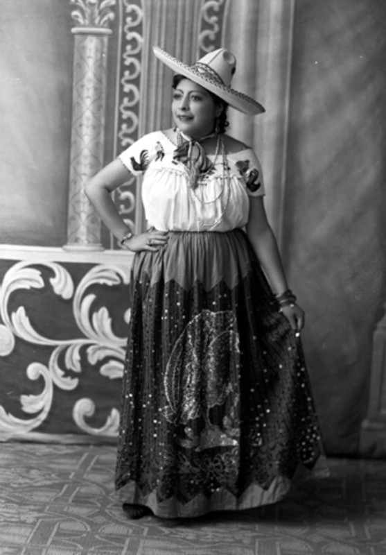 - China poblana sonriente y con sombrero, retrato