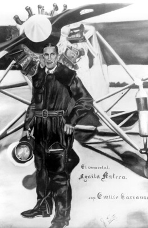 - "El inmortal Aguila Azteca, cap. Emilio Carranza", reprografía de una pintura