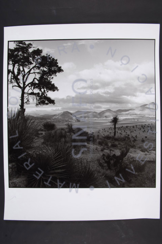 - I.O. En el reverso: "Adrián Mendieta 1994", "Vista del Valle de Perote". Pertenece a la serie: "Luz de inviernos". Adrián Mendieta, V.F. 868480.