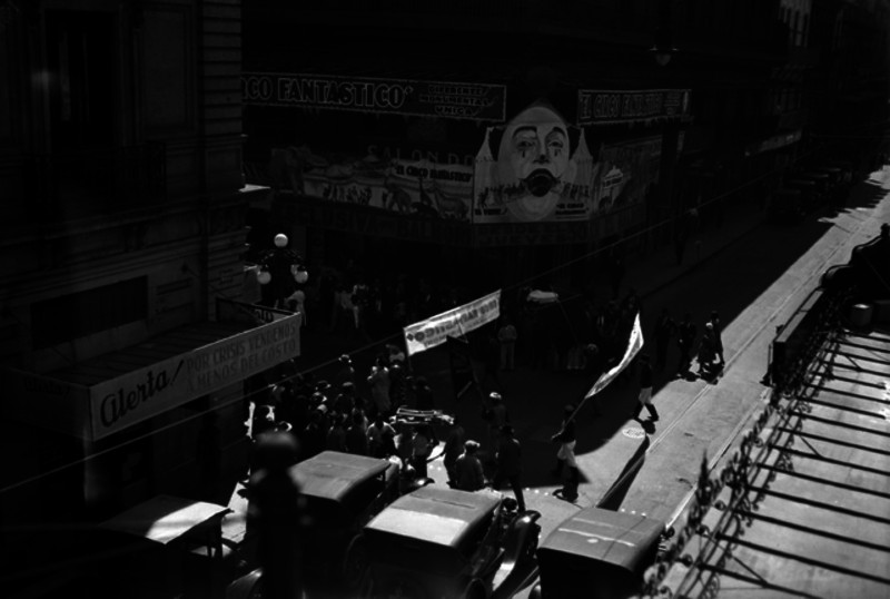 Payasos del circo fantástico desfilan en una calle de Av. Reforma