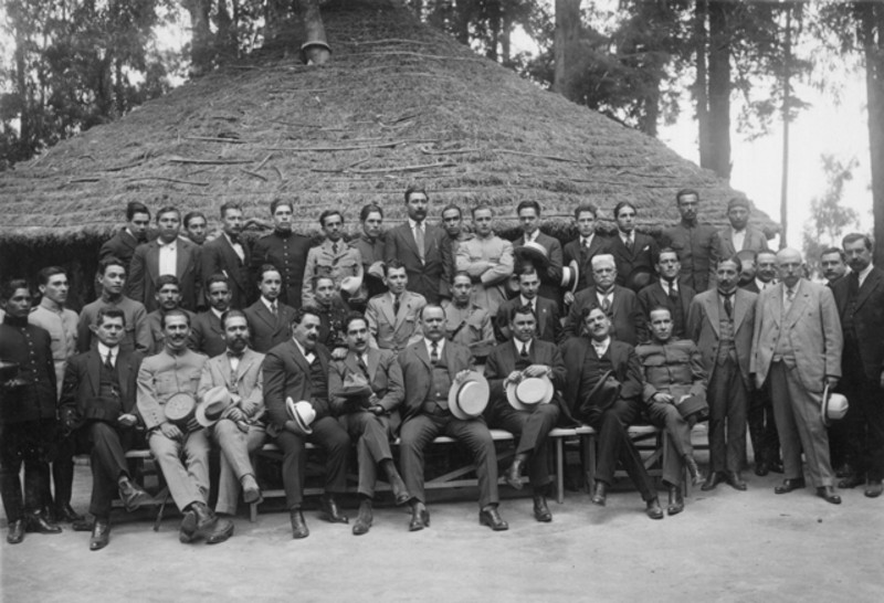 Alvaro Obregón, Plutarco Elías Calles, Adolfo de la Huerta y asistentes al banquete de Santa Fé, retrato de grupo