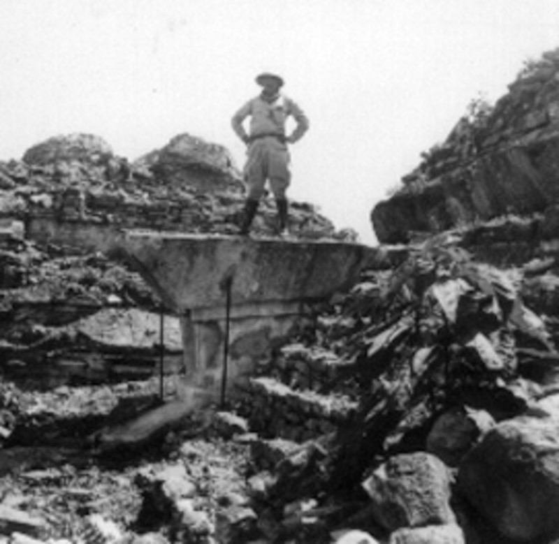 - Arqueólogo sobre los restos de un edificio prehispánico