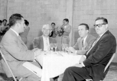 Empresarios y mariachi durante una comida en los jardines de la empresa Tecnocreto S.A.