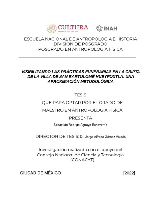 - Visibilizando las prácticas funerarias en la cripta de la Villa de San Bartolomé Hueypoxtla