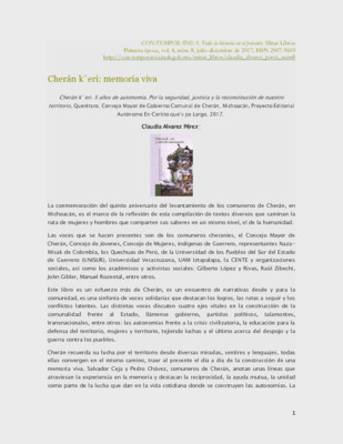 Cherán k´eri: memoria viva