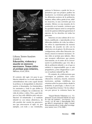 Liliana Torres Sanders (coord.), Educación, violencia y muerte en menores mexicanos. Temas útiles al peritaje para infantes ...