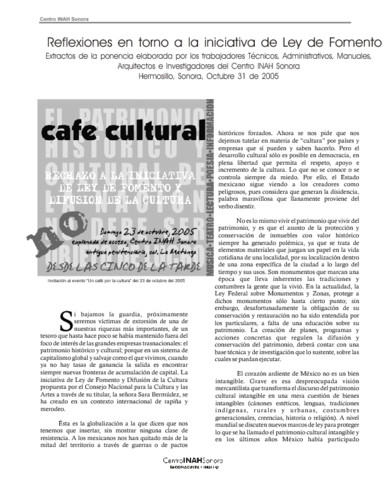 Reflexiones en torno a la iniciativa de Ley de Fomento y Difusión de la Cultura y nuestra materia de trabajo ...