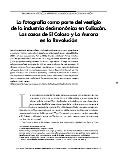 La fotografía como parte del vestigio de la industria decimonónica en Culiacán. Los casos de El Coloso y La Aurora en la Revolución ...