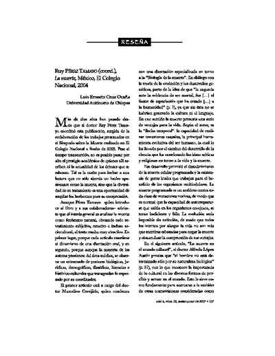 Pérez Tamayo, Ruy (Coord.) 2004. La muerte, México, El Colegio Nacional ...