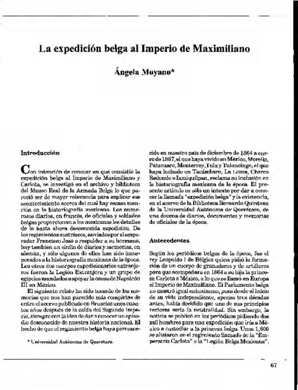 - 52 Como última nota quiero dar cuenta a los lectores que en el acervo de la Biblioteca Bernardo Quintana, de la Universidad Autónoma de Querétaro, se encuentran las fotocopias de 15 diarios y memorias de los oficiales belgas, fotocopiadas con el permiso del Centro de Documentación del Museo de la Real Armada de Bélgica (en Bruselas) lo mismo que documentos relacionados con la Expedición.