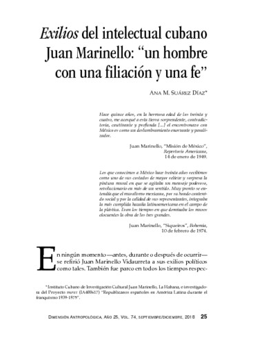 - Exilios del intelectual cubano Juan Marinello: “un hombre con una filiación y una fe”