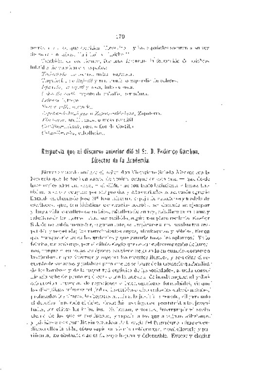 - Respuesta que al discurso anterior dió el Sr. D. Federico Gamboa, Director de la Academia.