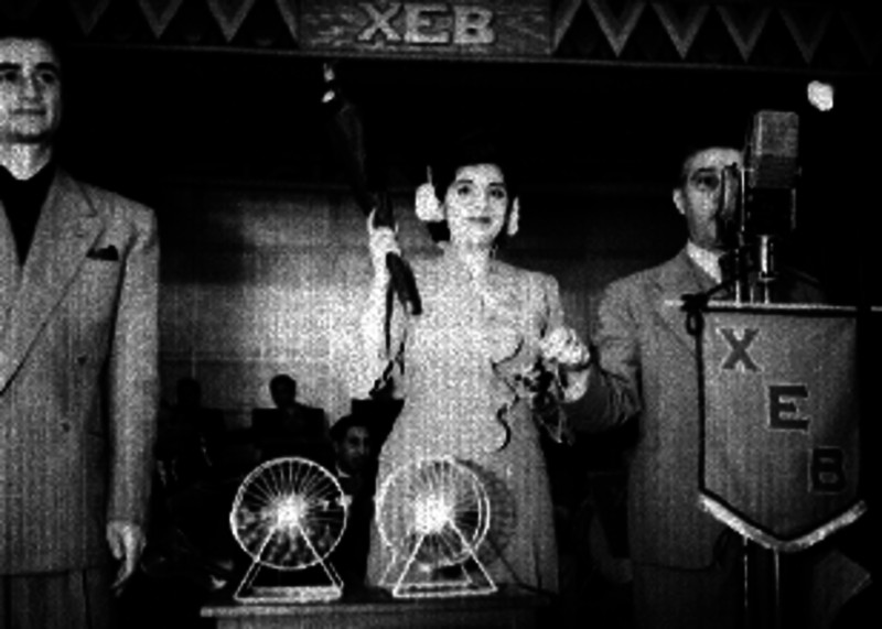 - Federico Baena ante los micrófonos de la XEB durante un sorteo