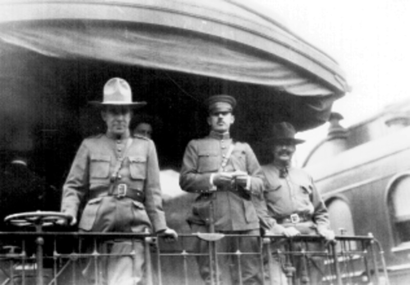 Generales Francisco Serrano y Eugenio Martínez en un vagón de ferrocarril