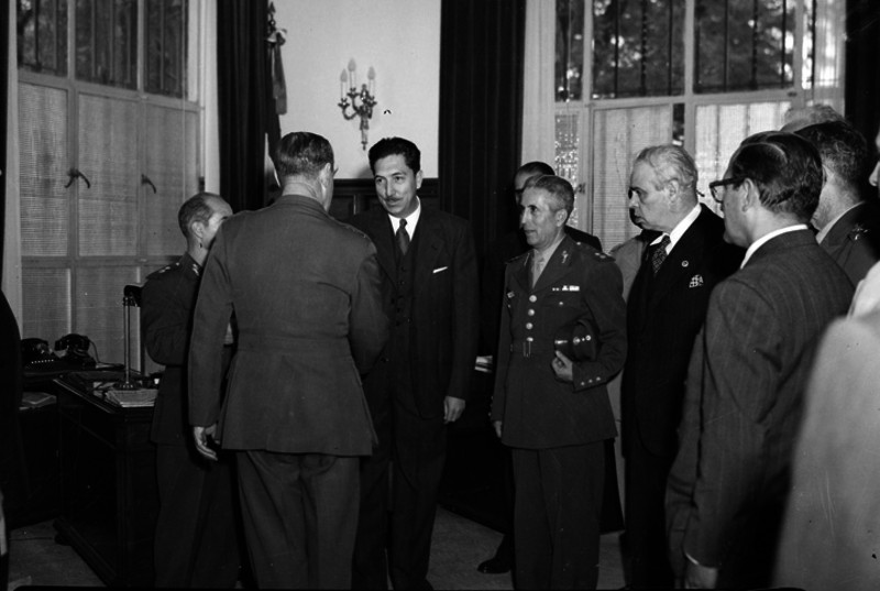 Miguel Alemán Valdés saludando a militares en Los Pinos