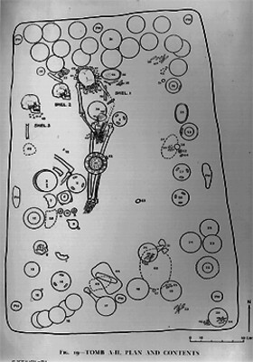 - I.O. En el anverso: "CXXXVII-51". Se lee en la lámina: "FIG. 19-TOMB A-II PLAN AND CONTENTS". Zaculeu, V.F. 412978.