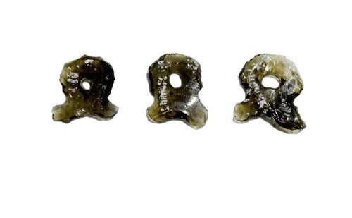 - Excéntrico sobre navajilla de forma circular con muescas laterales y aletas, presenta perforación central