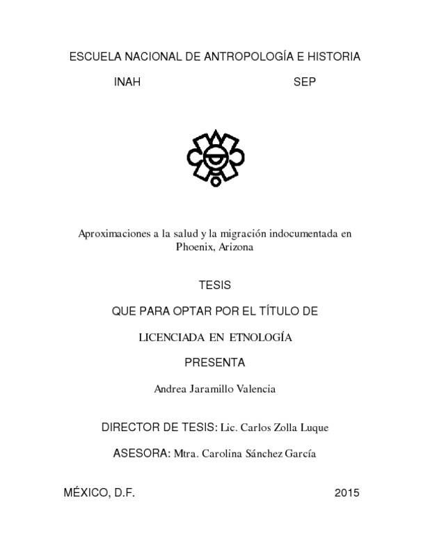 - Aproximaciones a la salud y la migración indocumentada en Phoenix, Arizona