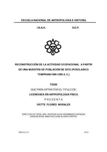 - Reconstrucción de la actividad ocupacional a partir de una muestra de población de Xico (Posclásico temprano 900-1200 d.C.)